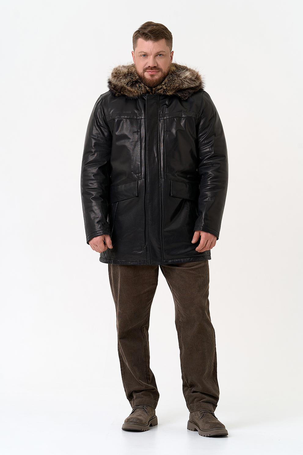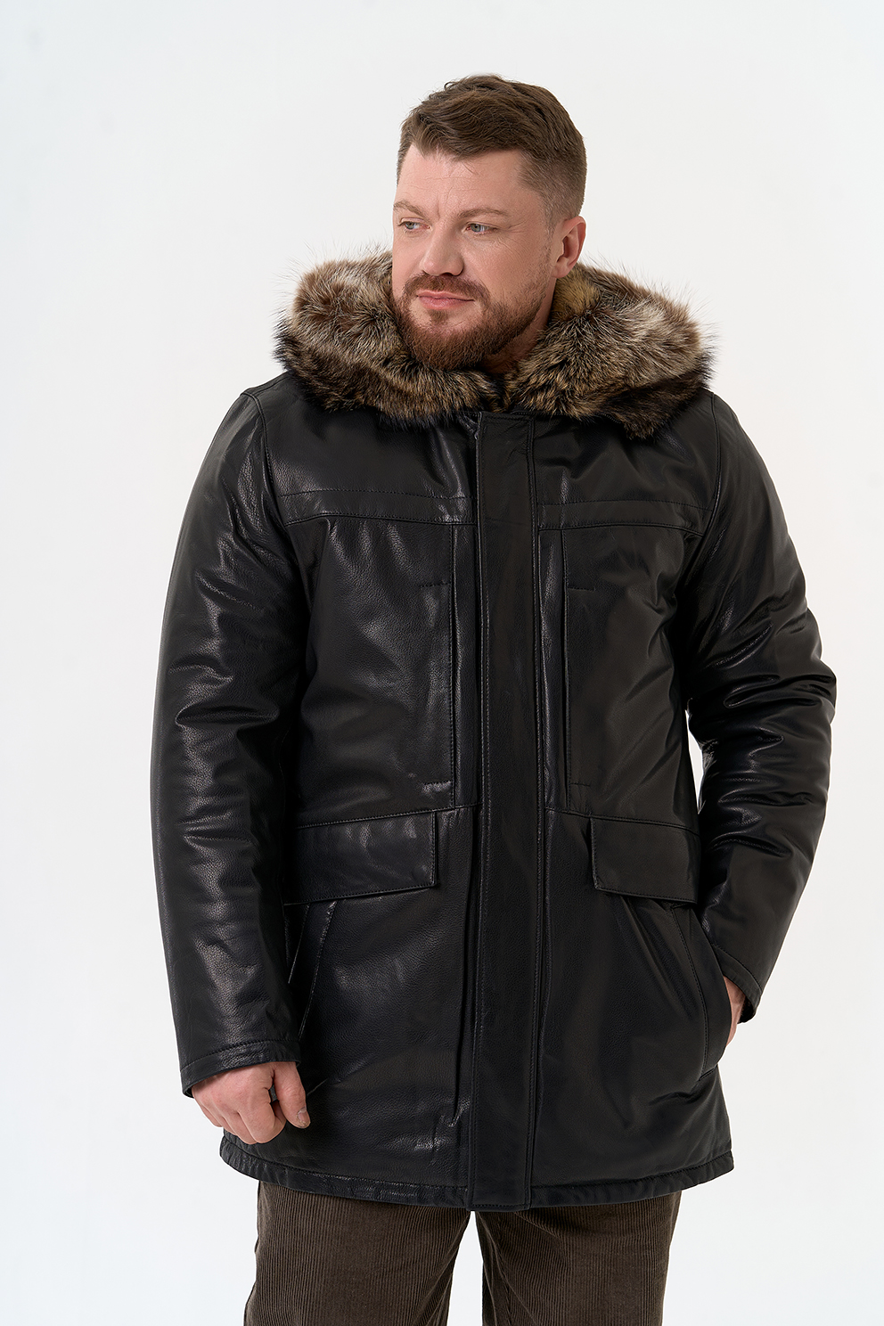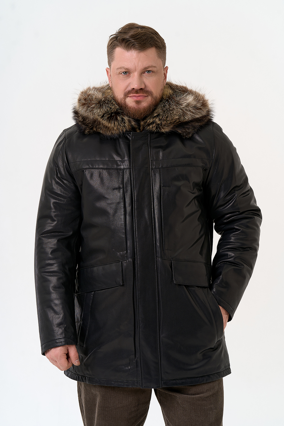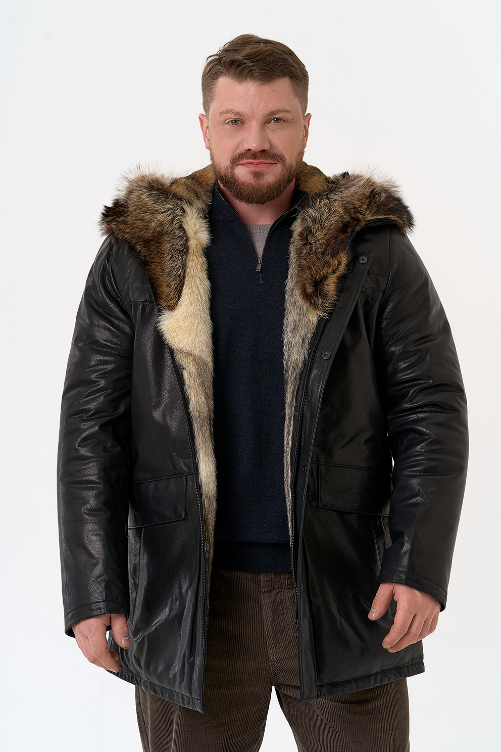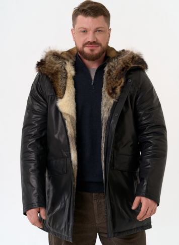 Тип ворота - капюшон, отделка мех енота