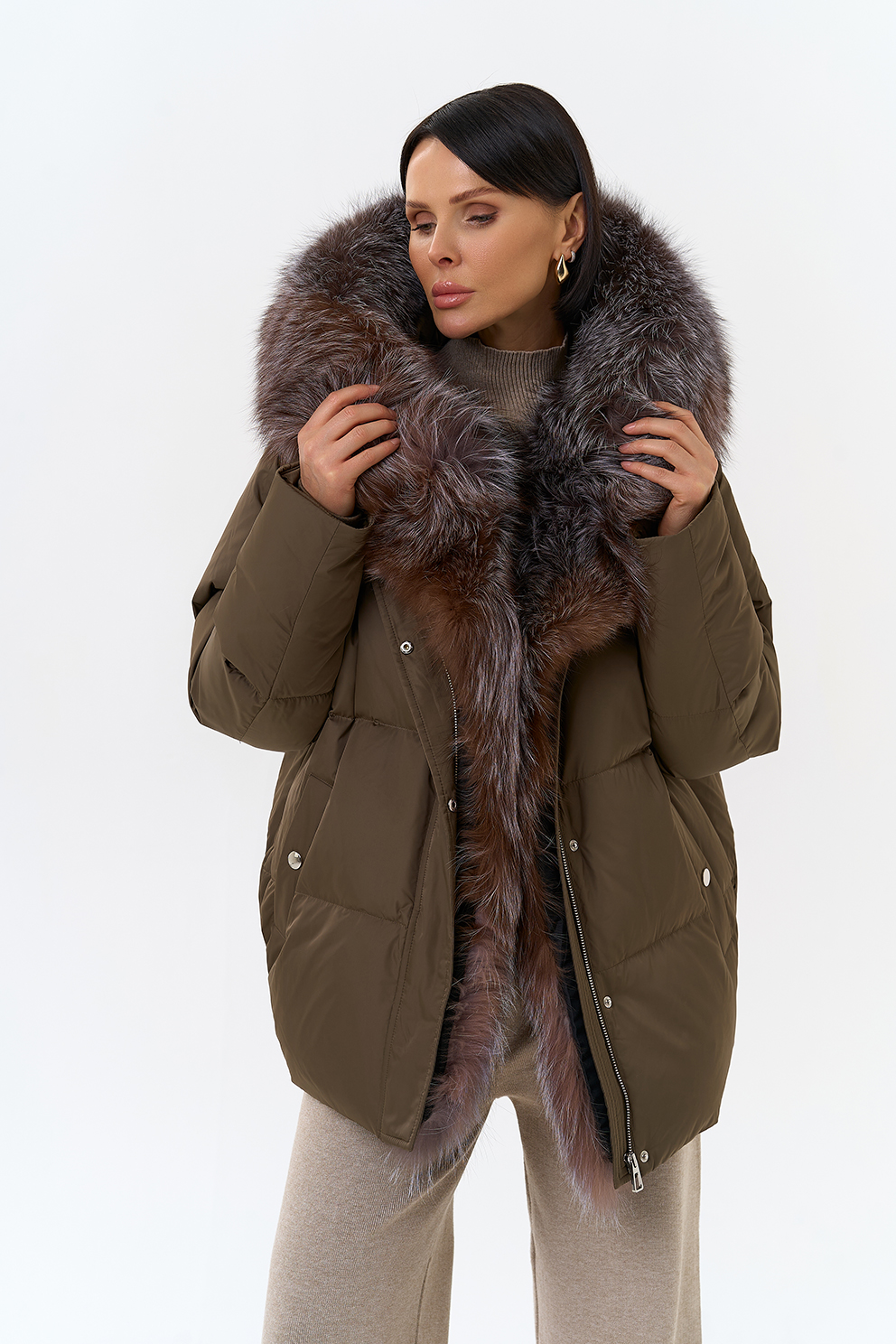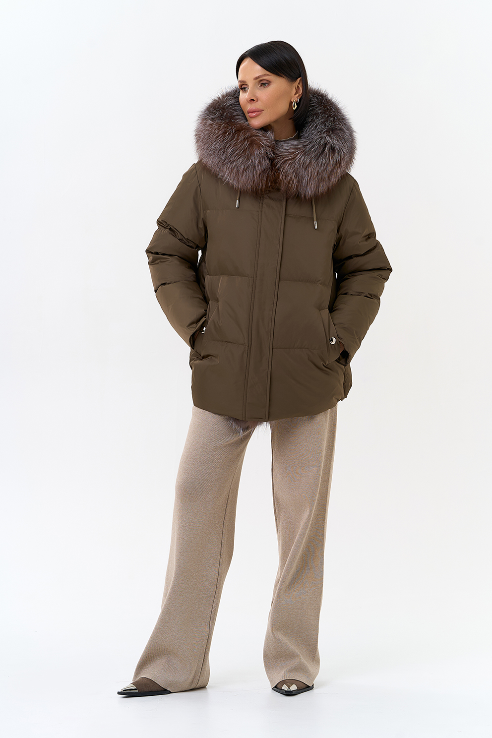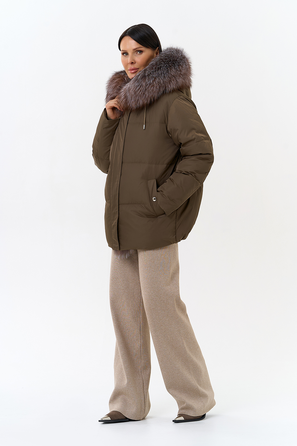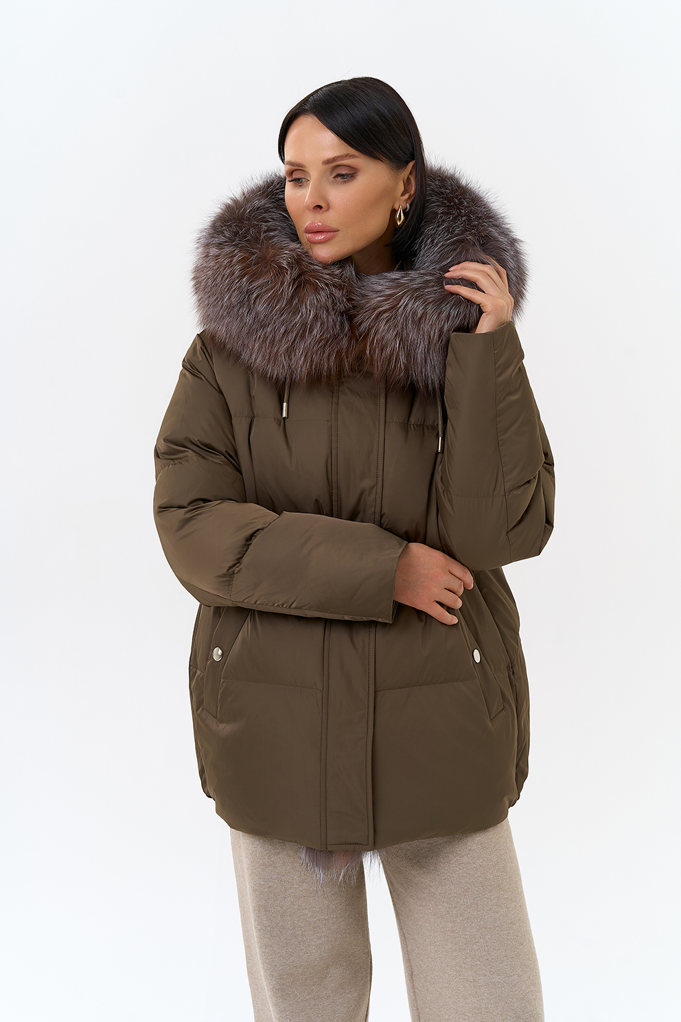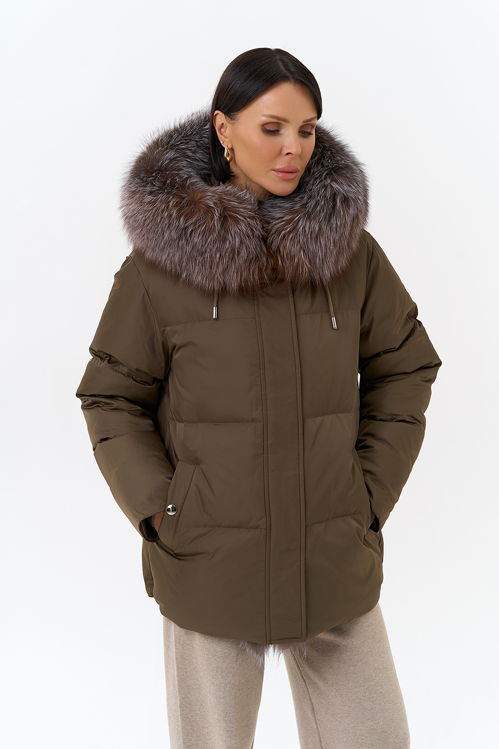 Крой воротника - капюшон, отделка блюфрост