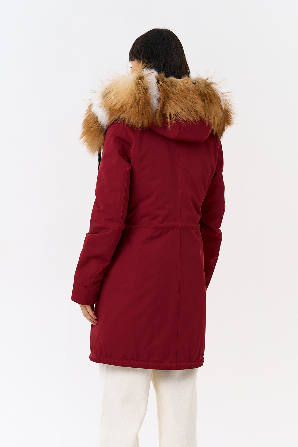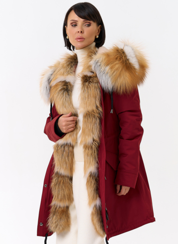 Крой воротника - капюшон, отделка лиса рыжая, овчина