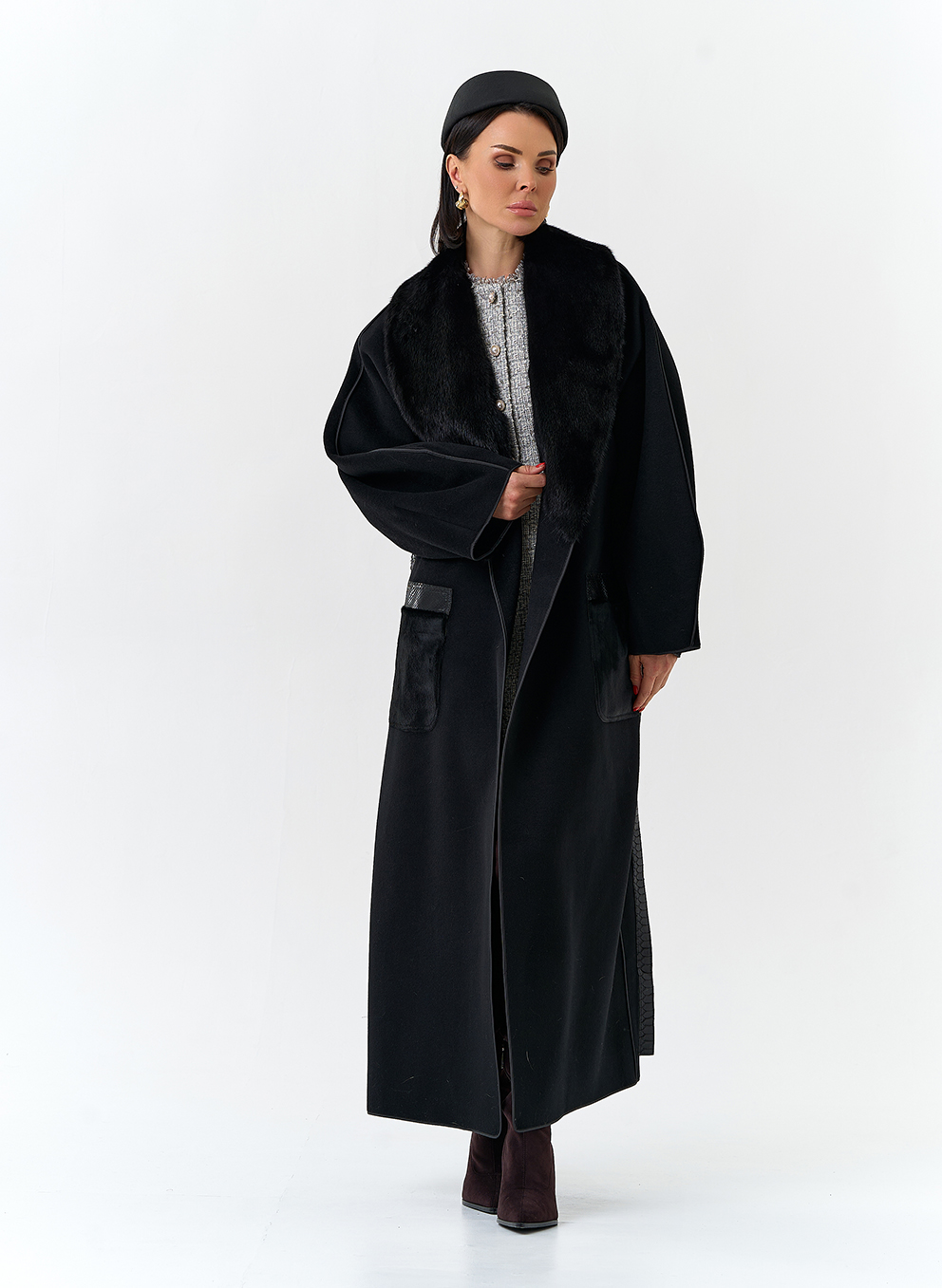 Отделка воротника - съемный мех норки, цвет черный