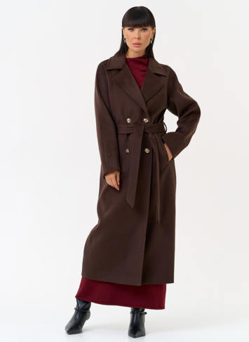 Женское пальто с акцентными пуговицами (коричневый)