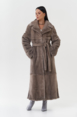 Шубу из меха скандинавской норки можно смело назвать произведением искусства. Раскладка меха крупными пластинами придает изделию особую изящность. Пояс позволит подчеркнуть талию и придать шубе утонченный силуэт. Длина изделия 130 см делает его универсальным и подходящим как для повседневного использования, так и для особых случаев.