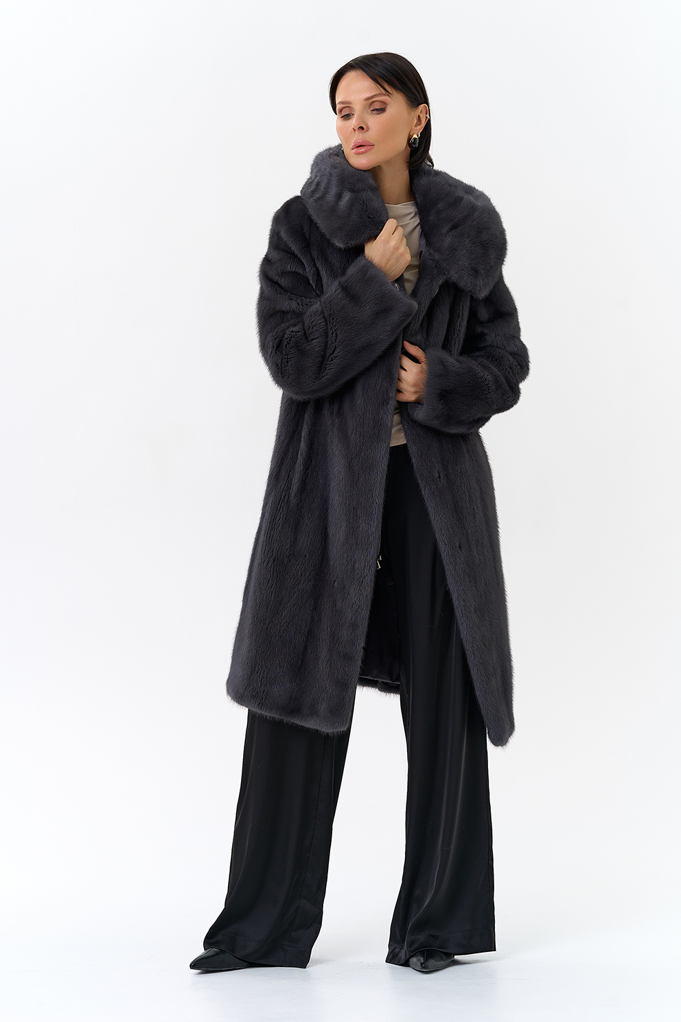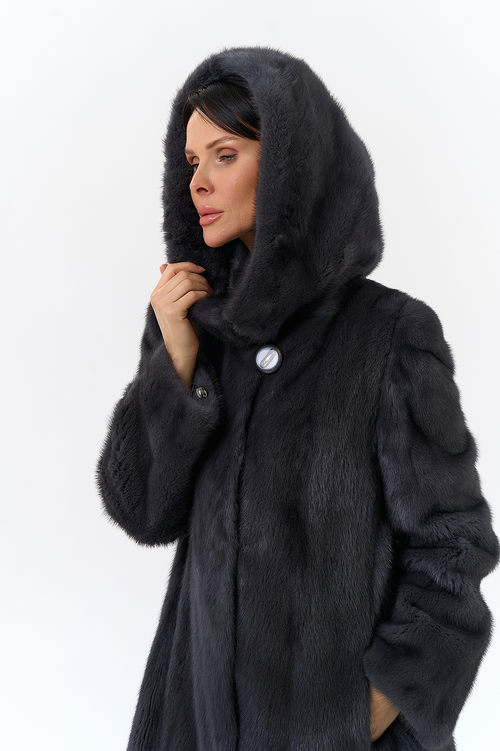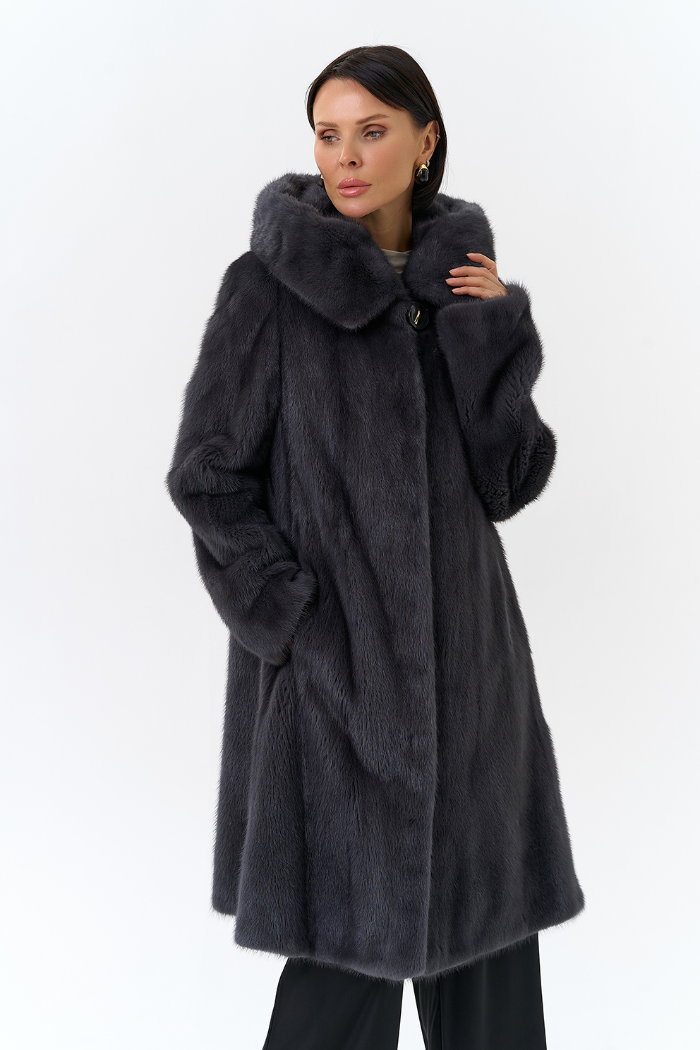 Норковая шуба годе/балетка в роспуск с капюшоном в роскошном цвете графит - это то изделие, в котором и девушка, и более взрослая леди почувствует себя особенно привлекательной. Этот фасон универсален, потому что позволяет экспериментировать с образами благодаря обуви и аксессуарам. Изделие дополнено пуговицами и шубными крючками. Представлен большой размерный ряд от 40 до 52 размера.
