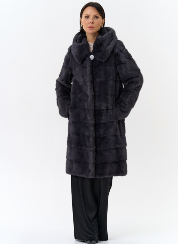 Норковая шуба трансформер в поперечном крое с капюшоном в цвете графит. Каждый день новая модель! Длина изделия трансформируется до 80 см,а рукав до длины ⅞. Шуба дополнена аккуратными пуговицами и крючками.